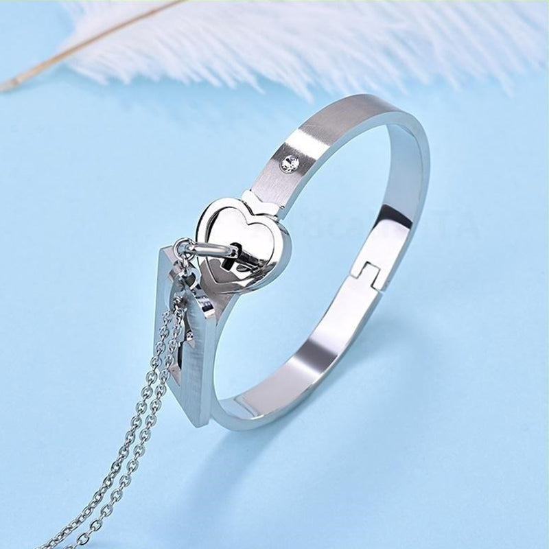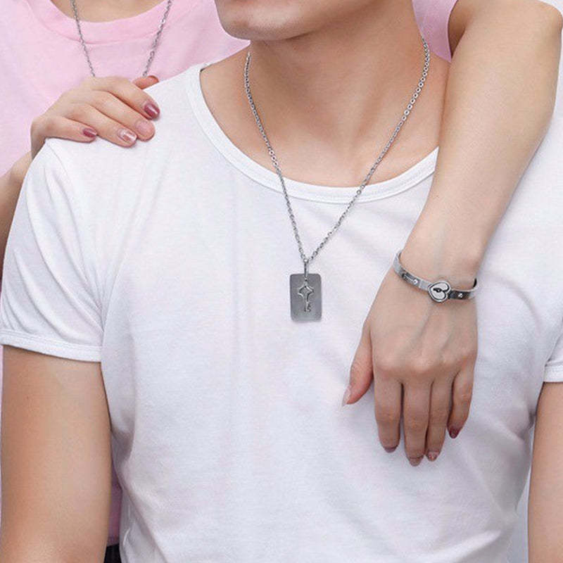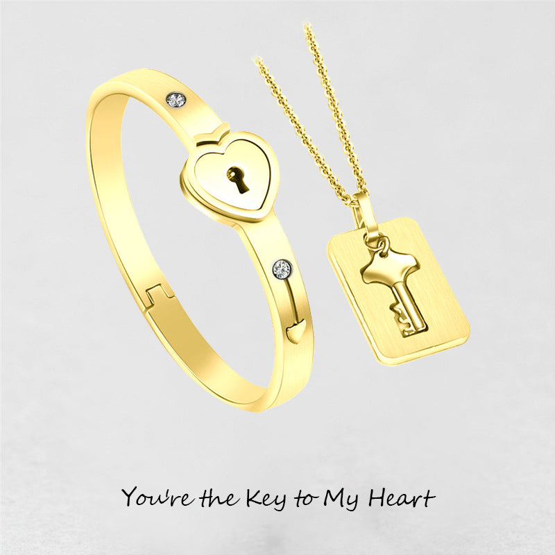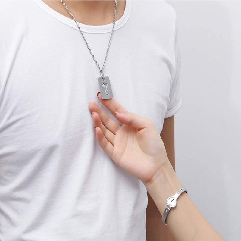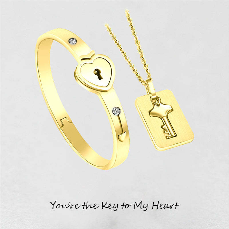 Romantic matching couple jewelry symbolize that only this key will open up the heart lock.Let yourself be swept away by an invasion of hearts. Heart-shaped bracelet and key necklace; expressing your love for the recipient.